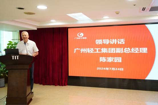 最后,广州轻工集团副总经理陈家园发表讲话。他对九游官方网站2024年上半年的工作表示肯定与鼓励。在接下来的工作中,他对九游官方网站提出了五点要求:一是提升主业竞争力,探索高质量发展新路径;二是优化资源配置,提升团队战斗力;三是发挥“链主”作用,服务发展大局;四是坚守依法合规,守牢安全底线;五是强化党建引领,确保廉洁从业。