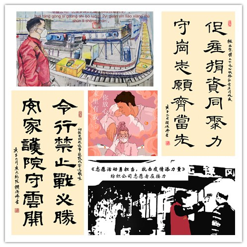 在此期间,广州轻工集团一个又一个感人的一线战“疫”故事温暖着你我,一个又一个奋进的复工复产事迹振奋着你我。作为广州轻工集团属下唯一一所以服装和艺术为主体的公办二级学院,广州大学纺织服装学院的师生虽受疫情影响只能宅在家开展网上教学,却以特殊的方式投入到了这场“万众一心,抗击疫情”的活动中。在学院党委的号召和学院团委的组织下,广大师生纷纷拿起笔墨纸砚,以真心真情为底色、以水墨丹青当载体,用艺术表现的形式对身边的榜样和感动进行创作,传递满满的正能量。